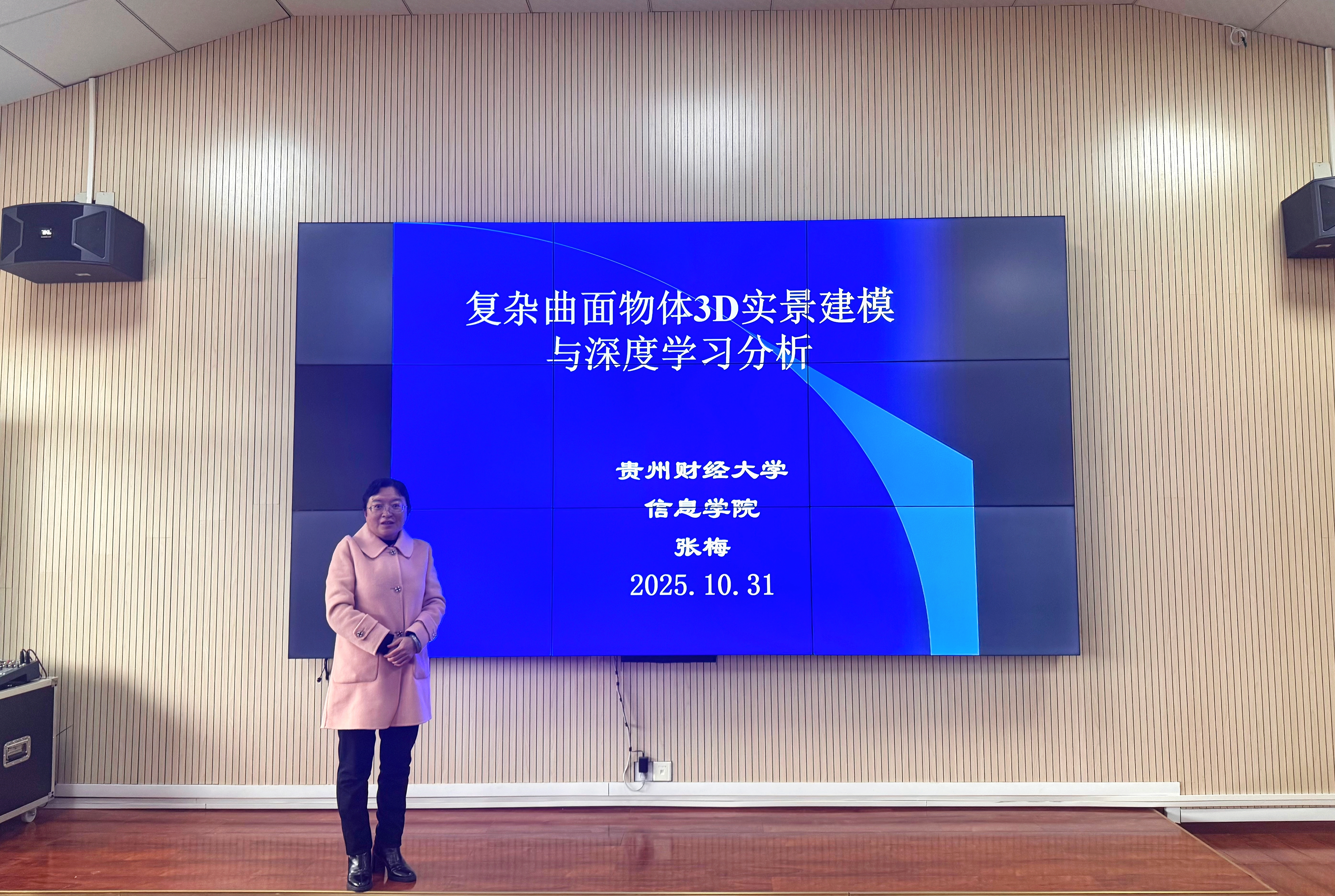 张梅教授以“复杂曲面物体3D实景建模与深度学习分析”为主题,系统介绍了曲面物体3D实景建模与基于深度学习的计算机视觉分析关键技术。报告不仅向初次接触曲面物体3D实景建模的师生介绍了入门的关键知识,而且还介绍了近年来国内曲面物体3D实景建模与计算机视觉分析关键技术研究的重要成果。
