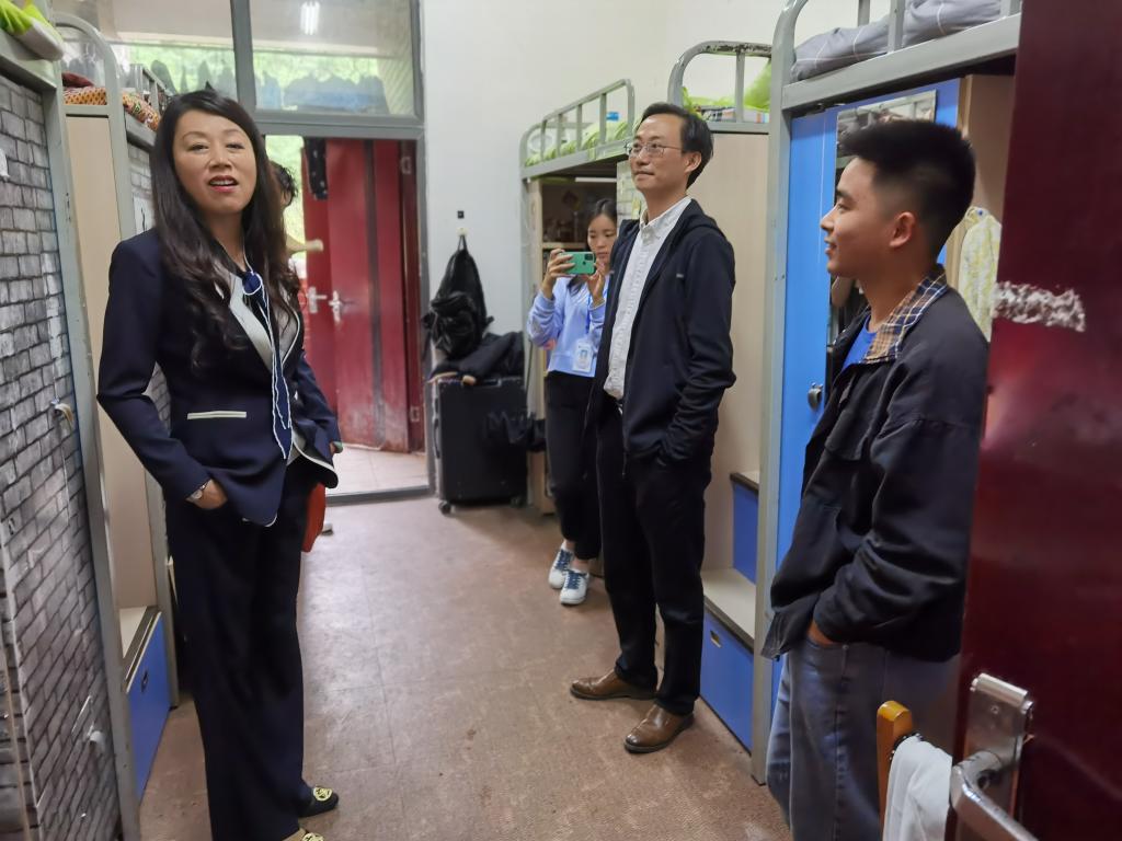 24日,卿春带队走访学生寝室,与各年级同学亲切交流。卿春关切地询问了同学们的学习生活情况,了解大家在各方面存在的困难和问题。在D17宿舍楼走访时了解到学生到学校图书馆自修距离较远的情况,通过实地考察发现该楼层有空余房间可作为自修室使用,现场进行了协调解决。26日该自修室已打造完毕投入使用。