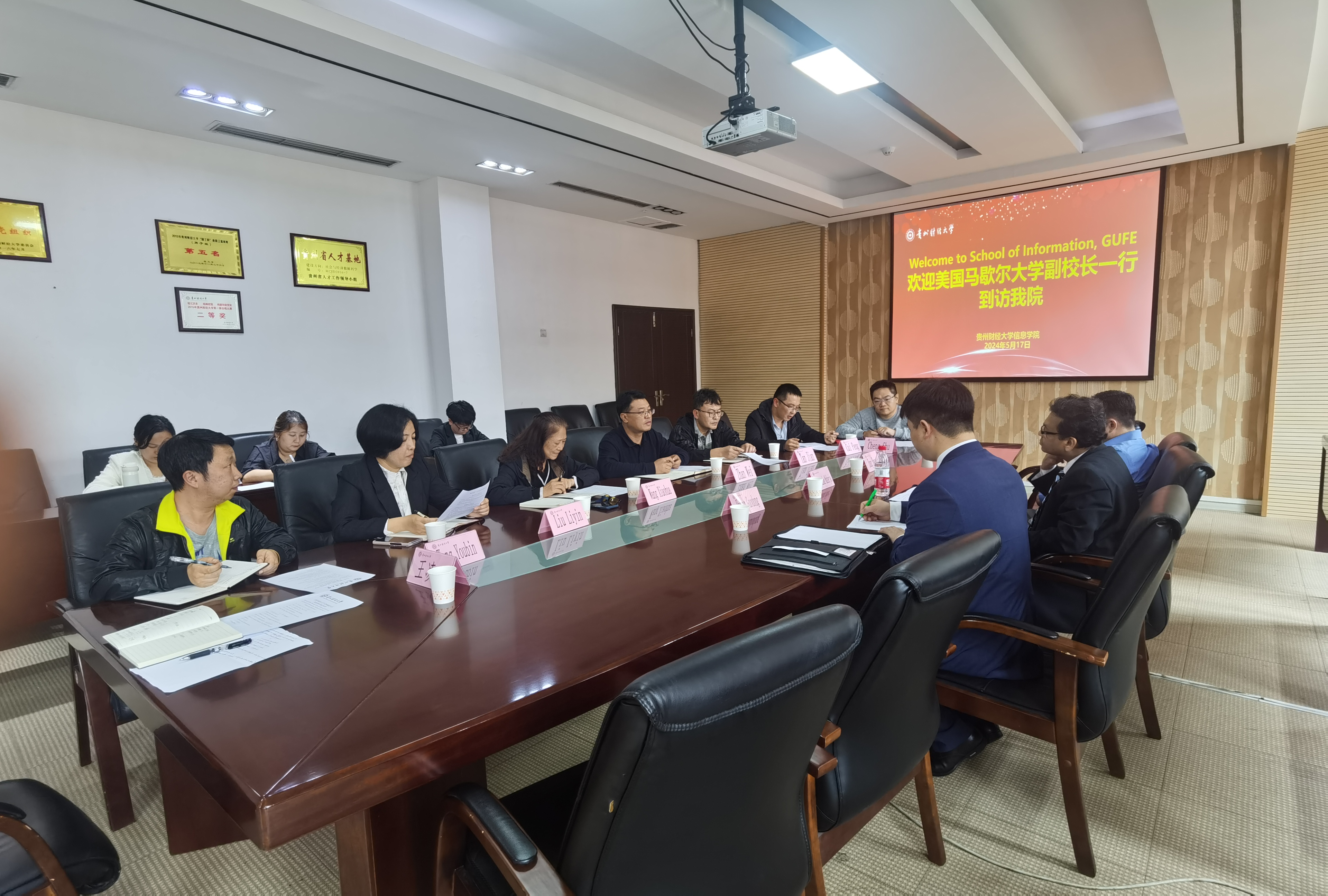 领导班子、教师代表举行了关于中外合作办学硕士项目的座谈会。陪同来访的有马歇尔大学金融、经济和国际商务系主任张少荣、马歇尔大学国际处中国项目负责人黄国栋。座谈会由网络博彩