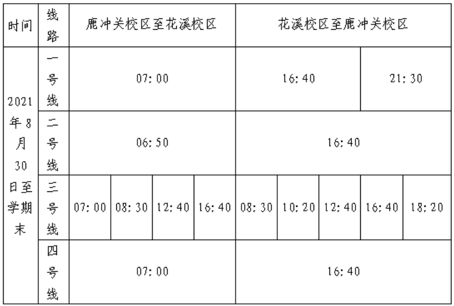 现将2021-2022学年第一学期工作日交通车运行时间和线路调整后通知如下: